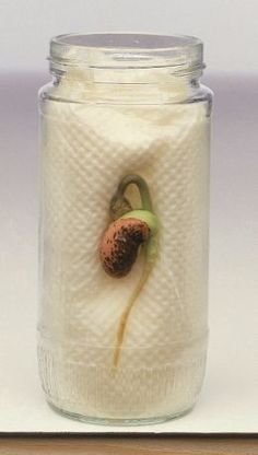 Babot csíráztatni nagyszerű móka: Egy napra be kell áztatni a babot, aztán nedves papírtörlővel kibélelni az üveget és mellé tenni a beáztatott babszemet